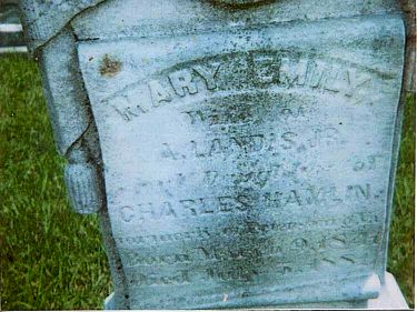 This photograph of Mary Emily Hamlin's (1841 - 1881) tombstone was provided by Carroll Hayden.