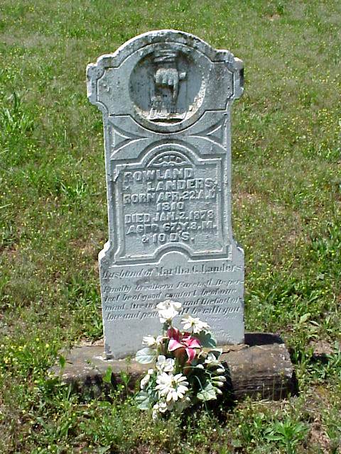 This photograph of Rowland Landers (1810 - 1878) tombstone was provided by Carroll Hayden.