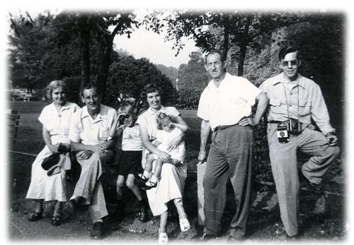 This was probably photographed in September 1950. From left to right: Viola (Olsen) Lenhardt, Richard Allen Lenhardt, Daniel Jay Landiss, Norma (Lenhardt) Landiss, Janis Elaine Lenhardt, Albert George Lenhardt, Robert Eugene Landiss.